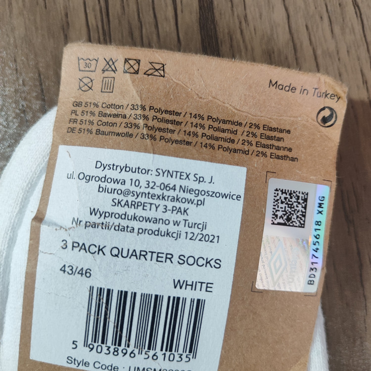 ۵۱ درصد نخ ، ۳۳ درصد پلی استر ، ۱۴ درصد پلی آمید ، ۲ درصد الاستین
