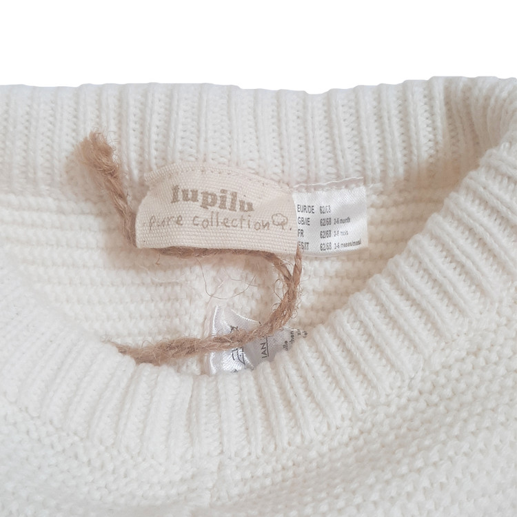 جزئیات: شلوار دارای بافتی نرم و لطیف است. رنگ شلوار شیری مایل به سفید است.