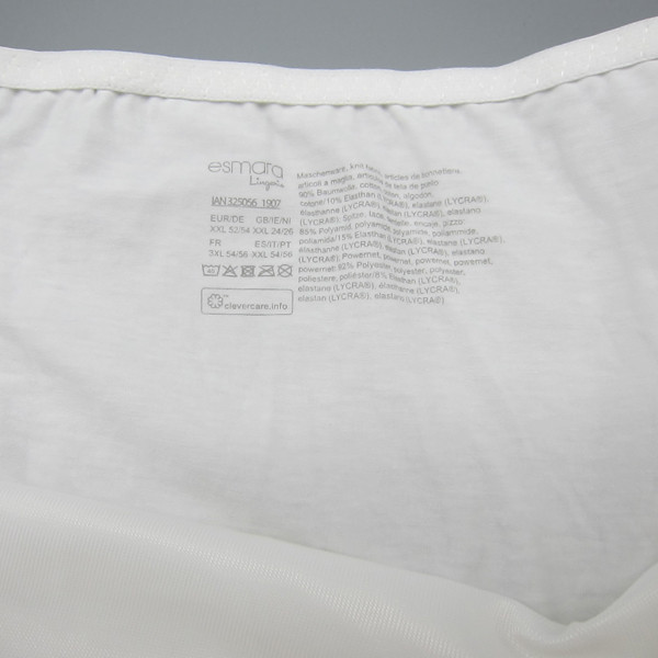 پارچه بافتنی: 90% پنبه، 10% الاستین توری: 85% پلی آمید، 15% الاستین پاورنت: 92% پلی استر، 8% الاستین