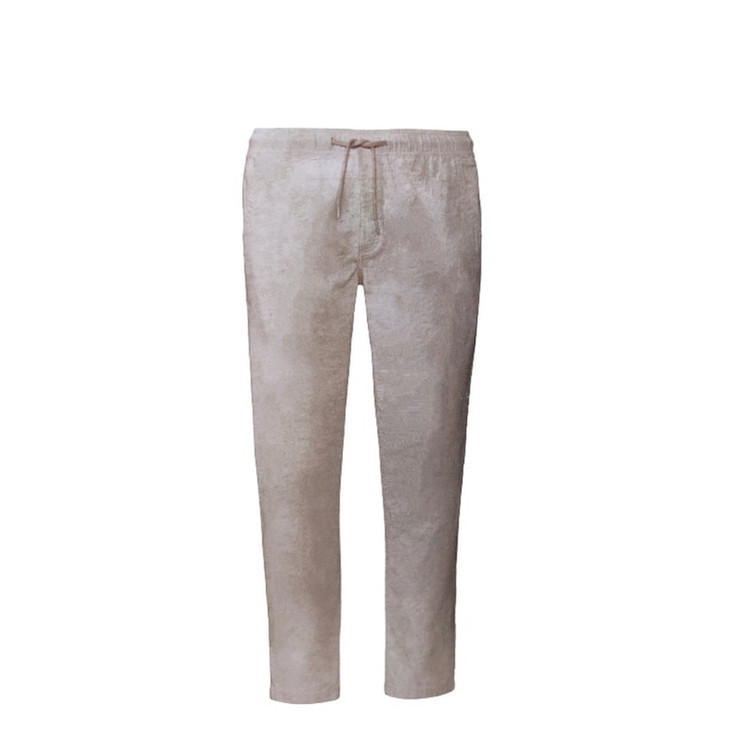 شلوار سایز بزرگ مردانه لیورجی متریال ۵۵٪ لینن ۴۵٪ کتان کمر کشی و بندی رنگ کرم مایل به استخوانی بسیار راحت و تن خور شیک هدیه فروشگاه آنیگما به مشتریان سایز بزرگ