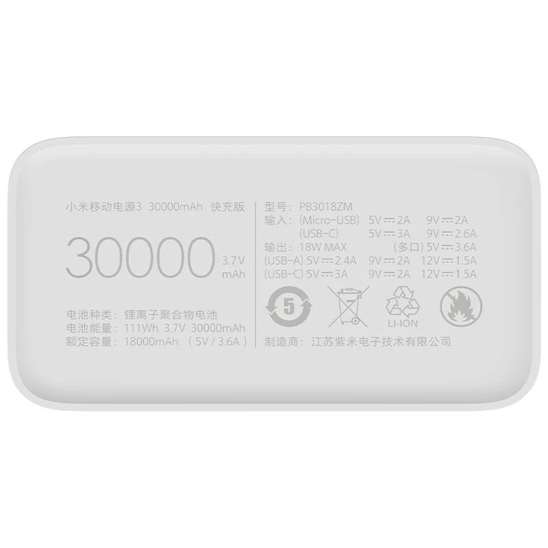 پاوربانک شیائومی مدل Mi PB3018ZM ظرفیت 30000 میلی آمپر ساعت