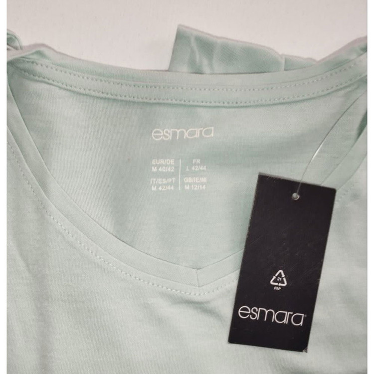 تیشرت زنانه اسمارا رنگ سبز طرح چاپ استین گوتاه یقه گرد قد کار تا روی باسن شلوارگ رنگ سبز طرح میوه کمر کار کش داری لند تنظیم کننده قد کار تا روی باسن